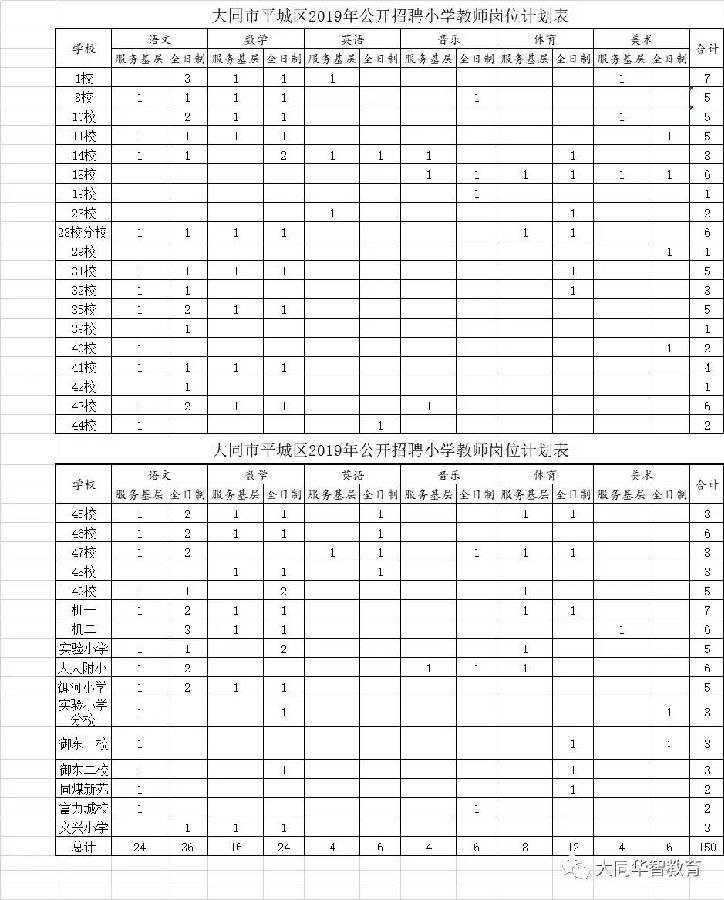 1、招聘崗位及計劃:小學教師150名,其中,語文教師60名,數(shù)學教師40名,英語教師10名,音樂教師10名,體育教師20名,美術(shù)教師10名。各學科具體招聘崗位計劃詳見《大同市平城區(qū)2019年公開招聘小學教師崗位計劃表》(附后)。