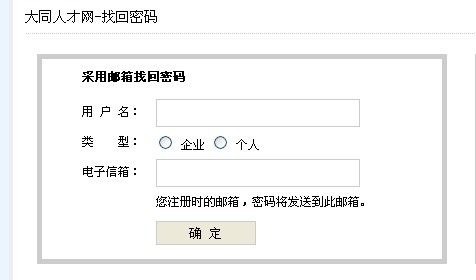 請輸入 用戶名 和當(dāng)初注冊的郵箱.特別注意,選擇好,企業(yè)和個人,企業(yè)就是招聘單位,個人就是求職者 填寫完畢 點(diǎn)確定 就可以了,如果這個方法不好用 可以用下一個,.